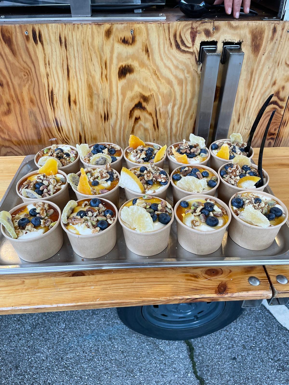 Georg und seine Frau Helena (und ihr Sohn) haben auf meiner Party mit dem Food-Truck meine Gäste so wunderbar verpflegt, dass Alle nur voll des Lobes sind. Das Essen war der Knaller 🤩. Wir hatten ein 3-Gänge-Menü mit Vorspeisenteller, Wahl-Hauptspeise und Dessert (griechischer Joghurt mit Nüssen/Früchten und Honig). Die Portionen sind groß und alle sind mehr als satt geworden. Es verlief alles sehr reibungslos, direkt vom ersten Telefonat an. Sie sind sehr zuverlässig und unkompliziert.