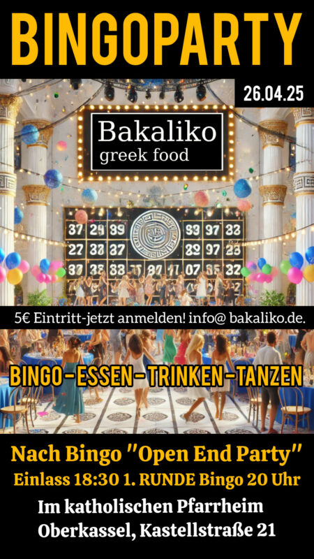 intern Bingoparty 26.04.2025 Posted on 12. Dezember 202417. März 2025 by georgbakaliko 12 Dez. Für die Bingo-Party bitten wir um Anmeldung. georgbakaliko Erste Karaoke Party Vierter „Griechisch-italienischer Abend“ 19.09.2025